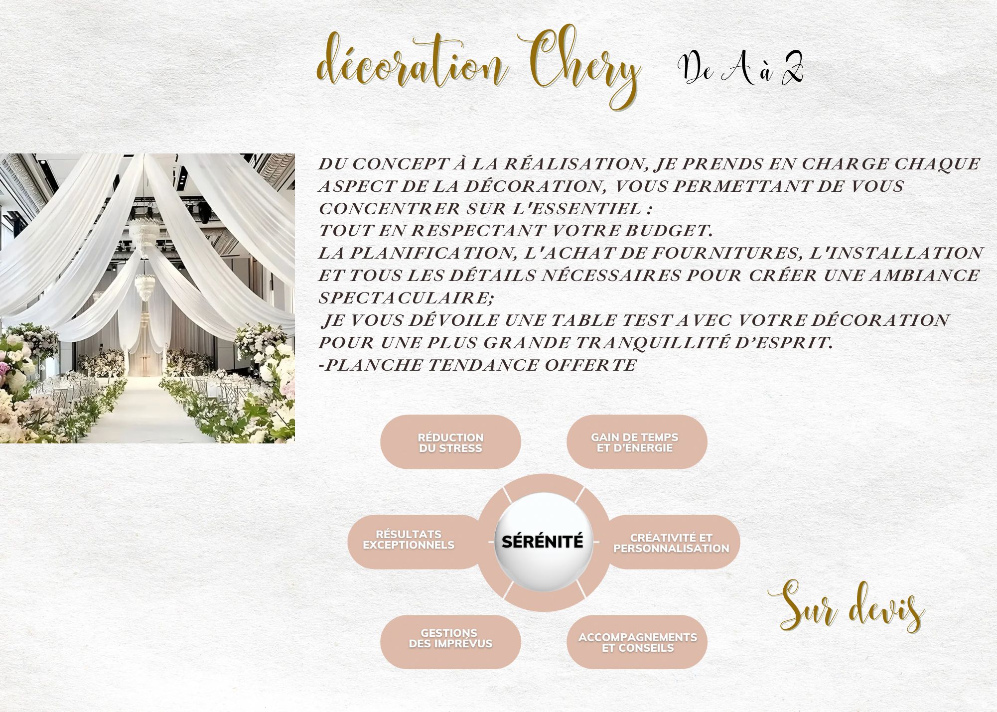 Il s’agit d’une solution où je prends en charge l’intégralité de l’organisation de votre jour j